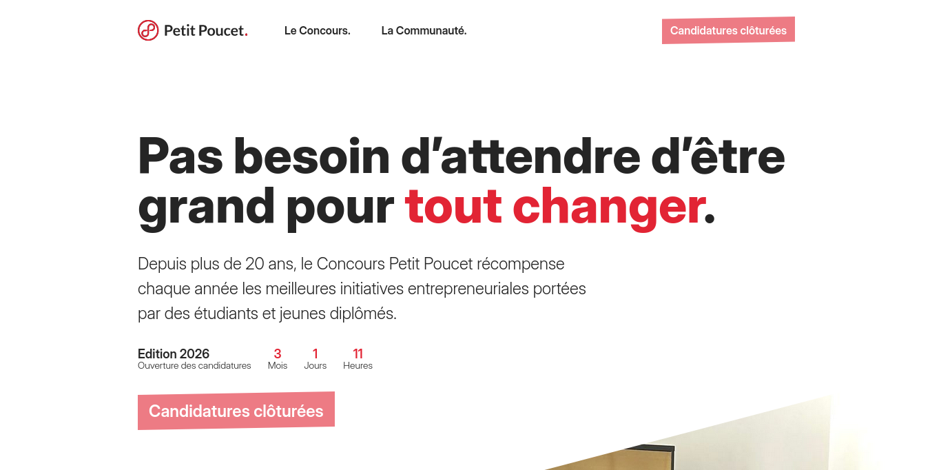 The Petit Poucet Competition rewards each year the 10 best projects carried out by students. The 7 leagues incubation program supports project leaders to turn them into growth companies (strategy advice, networking, networking, financing). Petit Poucet also allows the general public to invest in the top student entrepreneurship selected and supported by them thanks to the investment vehicle The Graduates in partnership with the crowdfunding platform Anaxago: https://www.anaxago.com/invest/club-innovation/the-graduates