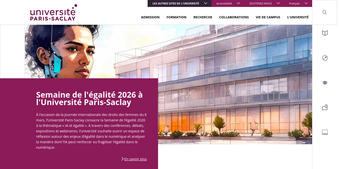Born from the combined will of universities, major schools and research organizations, Paris-Saclay University is one of the major European and global universities, covering the sectors of Science and Engineering, Life Sciences and Health, and Human and Social Sciences. Its scientific policy closely combines research and innovation, and is expressed in both fundamental sciences and applied sciences to respond to major societal challenges.