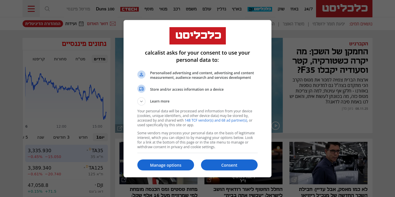אתר כלכליסט הוא אתר החדשות הכלכלי המוביל בישראל. באתר מתפרסמות כל חדשות הכלכלה בארץ ובעולם, בורסה, טכנולוגיה, נדלן, משפט ושיווק