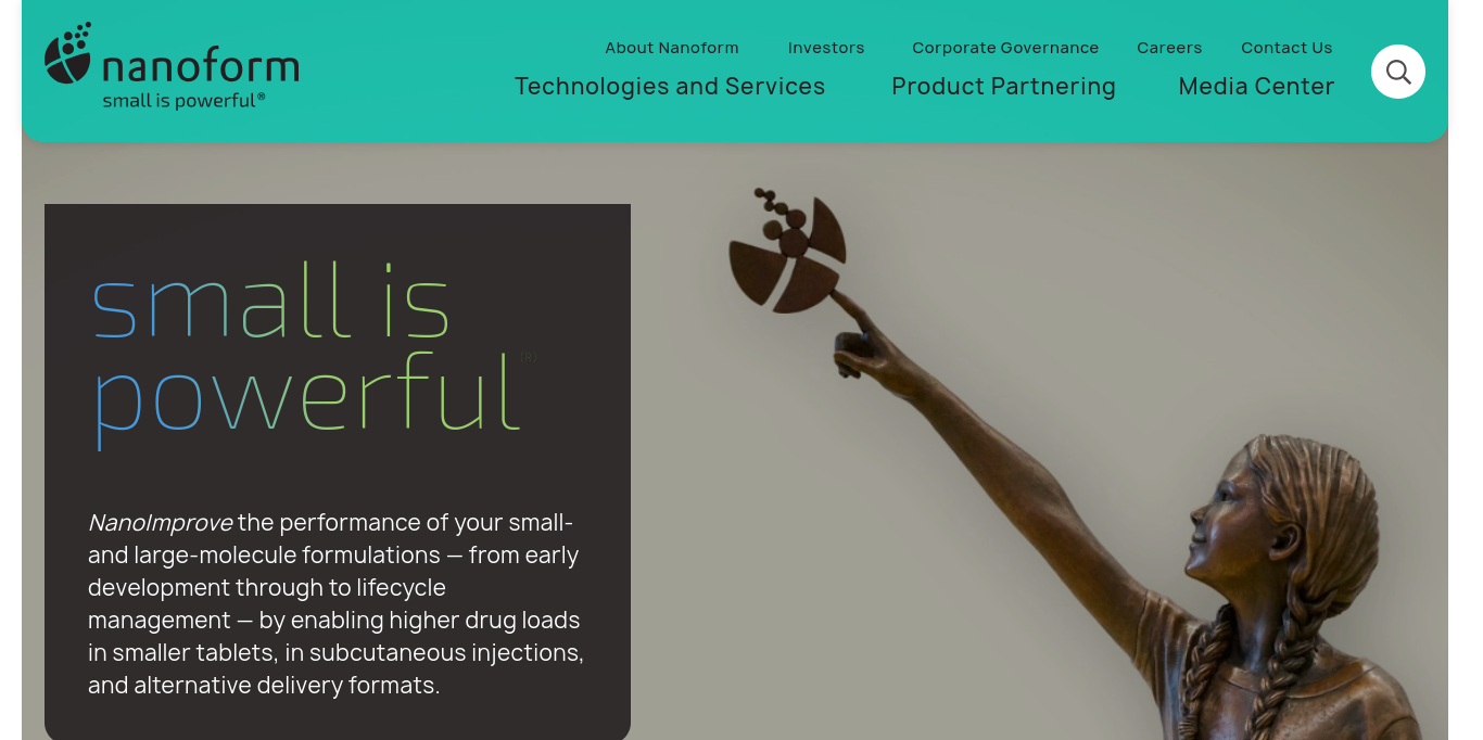 Nanoform is an innovative nanoparticle medicine enabling company. Nanoform works together with pharma and biotech partners globally to provide hope for patients in developing new and improved medicines utilizing Nanoform’s platform technologies. The company focuses on reducing clinical attrition and on enhancing drug molecules’ performance through its nanoforming technologies and formulation services. Nanoform’s capabilities include GMP manufacturing, and its services span the small to large molecule development space with a focus on solving key issues in drug solubility and bioavailability and on enabling novel drug delivery applications.