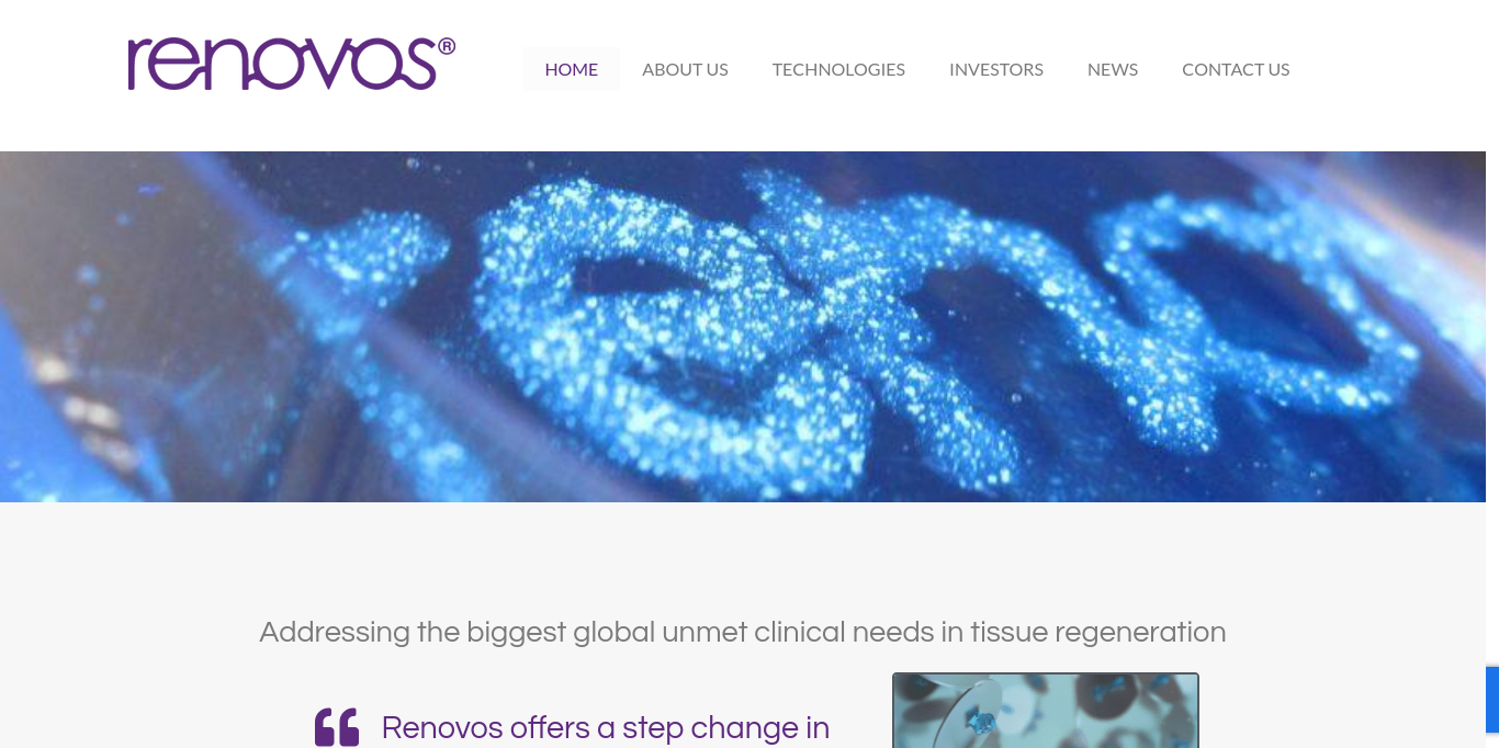 Renovos Biologics Ltd. (Renovos) is a biotech/medtech company focussed on the development of its patented synthetic nanoclay, RENOVITE®, as a drug delivery platform for regenerative medicine and beyond.
