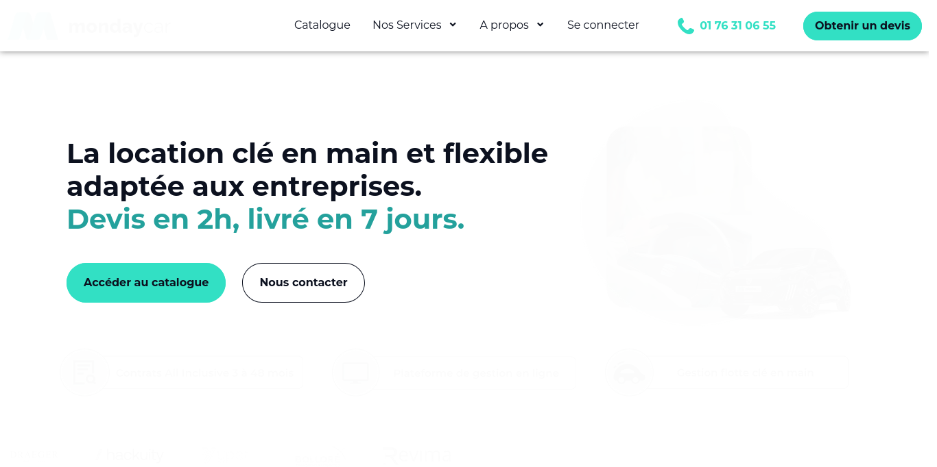 Mondaycar, service de location de voiture flexible de 3 à 36 mois pour les entreprises. Assurance, entretien et gestion de flotte inclus.