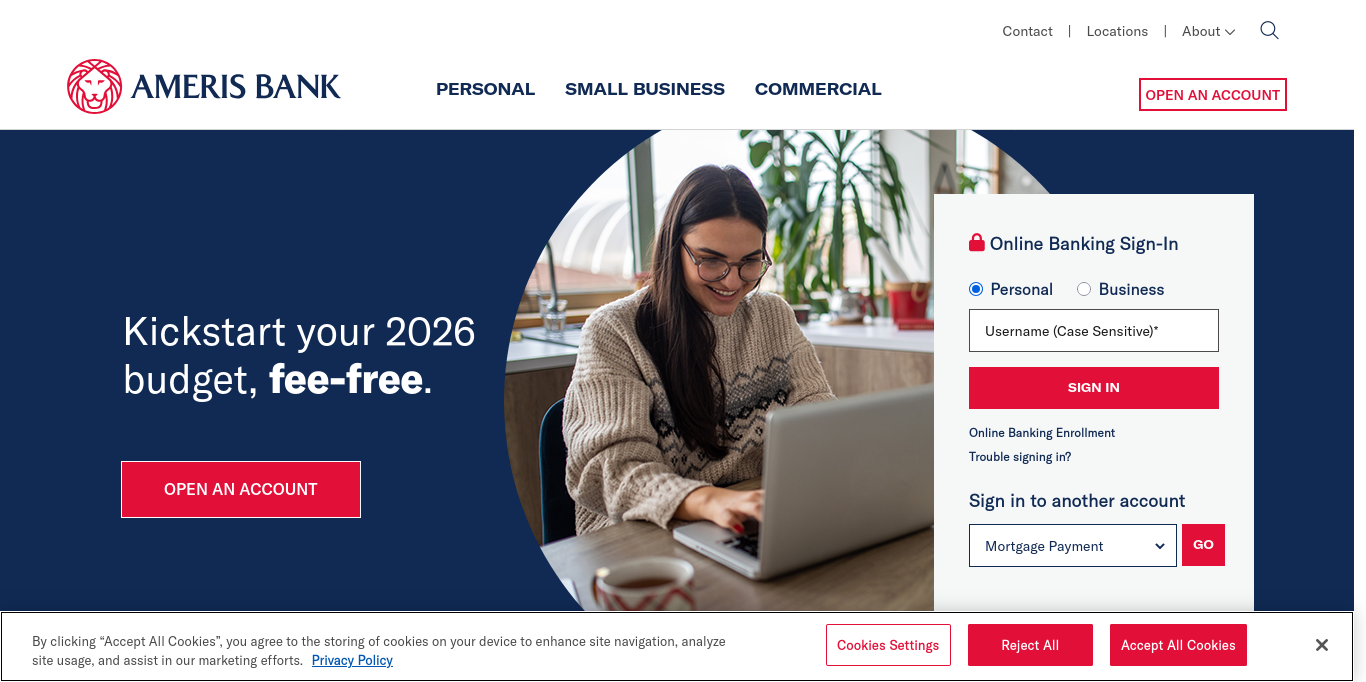 Ameris Bank in AL, FL, GA, MD, NC, SC, TN and VA offers valuable personal banking, business banking and loan solutions. Explore our offerings online.