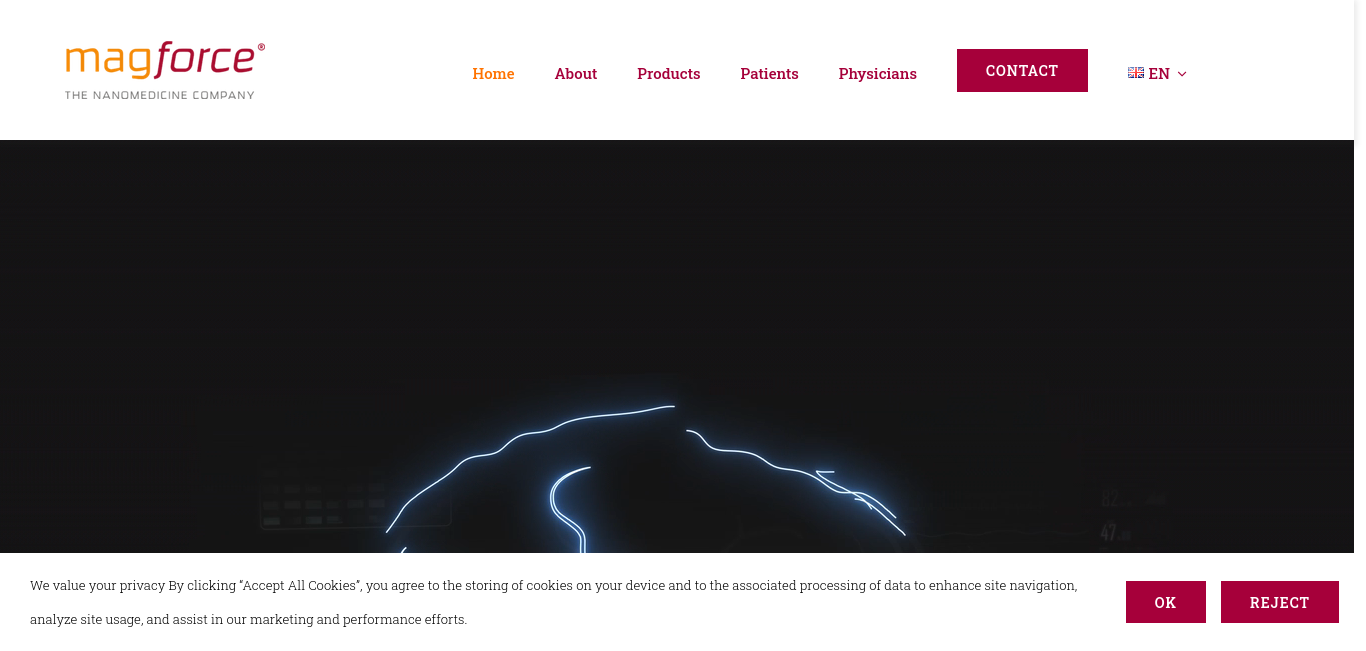 With NanoTherm® Therapy System (NTTS), we have developed an innovative approach based on nanotechnology, which we want to make available to patients worldwide. And we are getting closer and closer to this goal. NTTS is the first and only nanotechnology-based therapy with European approval for treating recurrent Glioblastoma, a deadly brain tumor. To date, many patients diagnosed with Glioblastoma tumors have improved their quality of life after using our technology.