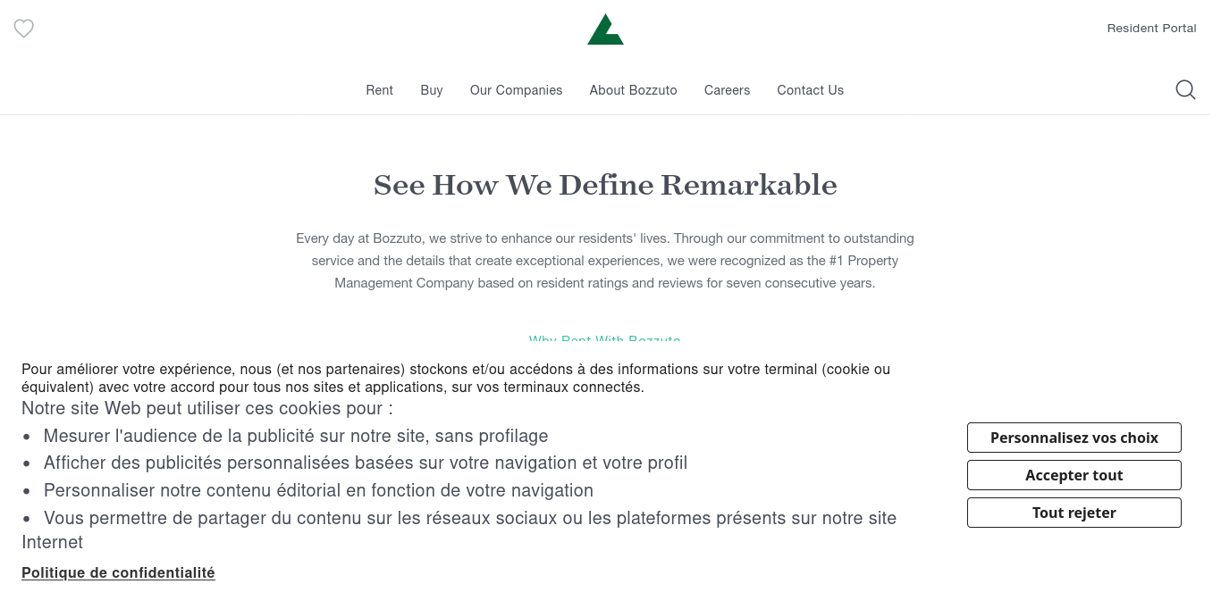 Bozzuto is an experience-focused real estate company distinguished by our innovative developments, dedicated customer service and top-rated workplace culture. With award-winning expertise in homebuilding, multifamily development, construction and management, we are devoted to delivering extraordinary experiences for those we serve. Since our founding in 1988, we have developed, acquired, and built more than 62,000 homes and apartments. We currently manage 130,000 apartments and 4 million square feet of retail space across the U.S.